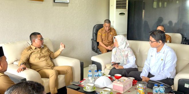 Bupati Pelalawan H Zukri Misran saat audiensi dengan pihak PLN. Progres pemasangan kabel bawah laut ke Kuala Kampar sudah 50 persen.