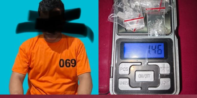 Dari hasil pemeriksaan, ditemukan satu kaleng rokok berwarna hitam yang berisi 9 paket diduga sabu dengan berat kotor 1,46 gram. Selain itu, turut diamankan satu unit sepeda motor Honda Supra tanpa nomor polisi dan satu unit handphone Android.