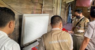 Petugas Karantina saat meninjau gudang penyimpanan produk komoditi karantina ilegal di Jl Impres, Selatpanjang Timur (Dhamean Hasibuan) MERANTI (pekanbarupos.co) – Gudang penyimpanan produk makanan impor di Jl Impres, Selatpanjang Timur digrebek petugas Balai Karantina Pertanian Hewan dan Tumbuhan Pekanbaru Wilker Selatpanjang, Minggu malam (26/2/23). Saat penindakan berlangsung, petugas menemukan ribuan …